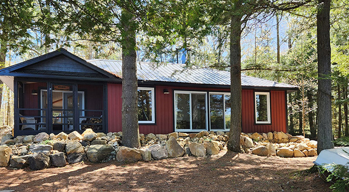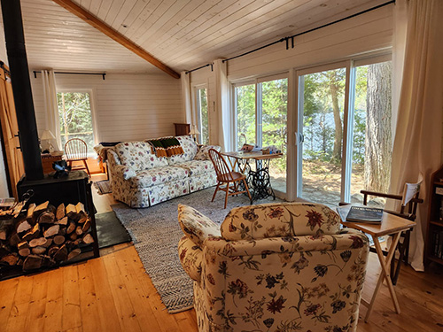 At 1400 sq ft, the main cottage has a full kitchen, a dining table that seats 10, sleeping areas for 6 and 2 bathrooms - a 3 pc, plus an ensuite shower room and 2 pc. washroom, both attached to the primary bedroom.