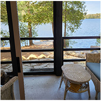 Our favorite spot to veg is the screened in porch overlooking the lake.