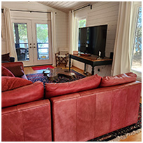 The primary bedroom is located on the SE corner of the cottage and is equipped with twin X-tra long beds that can be set up as a king, a custom queen Murphy bed is located on the NE corner of the cottage and can be set up as a work station desk during the day. There is currently a trundle bed located in the SW corner, which will be replaced in the future with an additional Murphy bed.